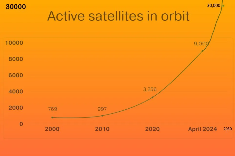 Different layers in orbit. Low satellites like the satellite ‘trains’ from spaceX, at 500 Km distance from earth. Middle and high placed satellites. The frequencies they use are not always public domain. You can download a list of satellites and the frequencies they use.